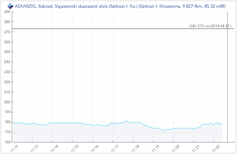 Sükösd, Vajastoroki duzzasztó alvíz (Sárközi-I. fcs.) vízmérce