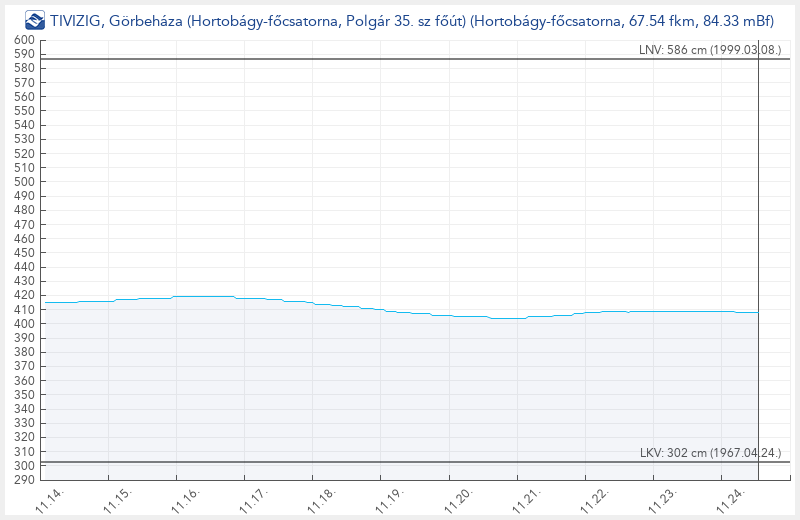 Görbeháza (Hortobágy-főcsatorna, Polgár 35. sz főút) vízmérce