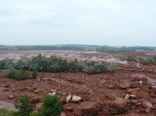 Képek a katasztrófa után a MAL Zrt. zagytározójáról, 2010. október 6-án
