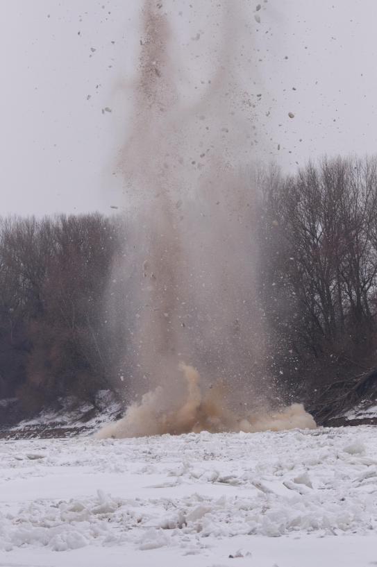 A Közép-Tisza-vidéki vízügyi igazgatóság újabb jégrobbantást hajtott végre a Tiszán.